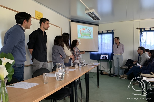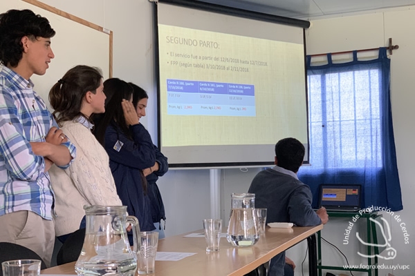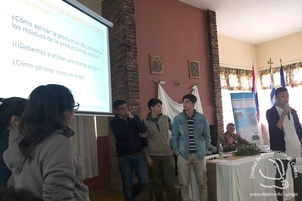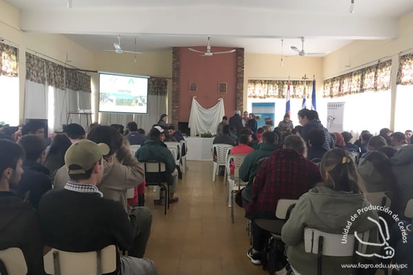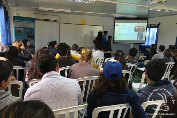 Esta jornada tuvo lugar el 11 de octubre del 2018 y la misma fue titulada “Primera jornada de presentación de experiencias de estudiantes de CETP-UTU en temas vinculados a la producción porcina”. Además de las Escuelas Agraria integradas al Proyecto también participaron las Escuelas Agrarias de Montevideo y de Vitivinicultura, las cuales realizan sus prácticas de Producción Animal en la Unidad de Producción de Cerdos. Estudiantes de todas las escuelas contaron su experiencia y trabajos vinculados a la producción de cerdos. ![]()
